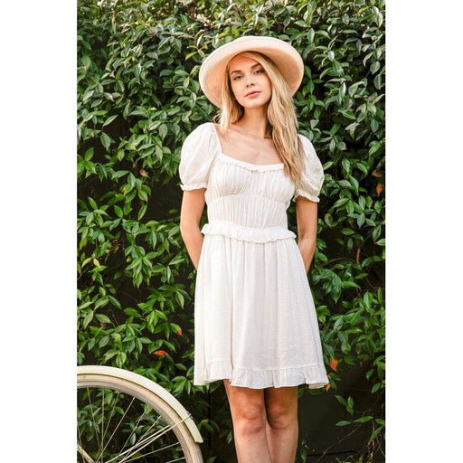 Expertly crafted with a solid color and simplistic design, the Puff Sleeve Buttoned Tiered Ruffled Mini Dress exudes elegance and femininity. Featu...
