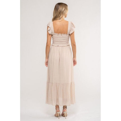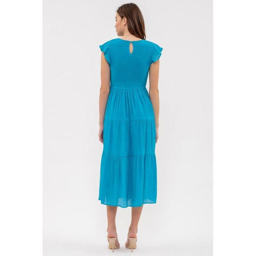 Elevate your wardrobe with our Smocked Tiered Midi Dress! Designed for both comfort and style, this dress features a smocked bodice and tiered skir...
