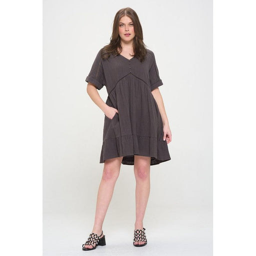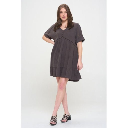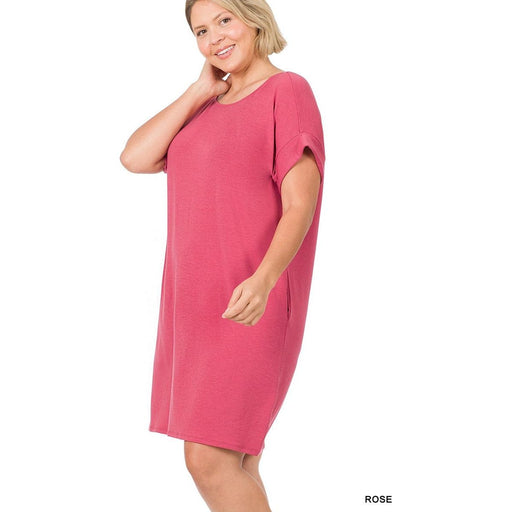 Plus Rolled Short Sleeve Round Neck Dress Total Body Length: 37.5", Bust: 48" Approx.- Measured From 1x * Color May Vary Slightly Due To Monitor Re...
