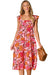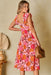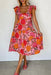 Pink Floral Square Neck Ruffled Flutter Sleeve Tiered Midi Dress