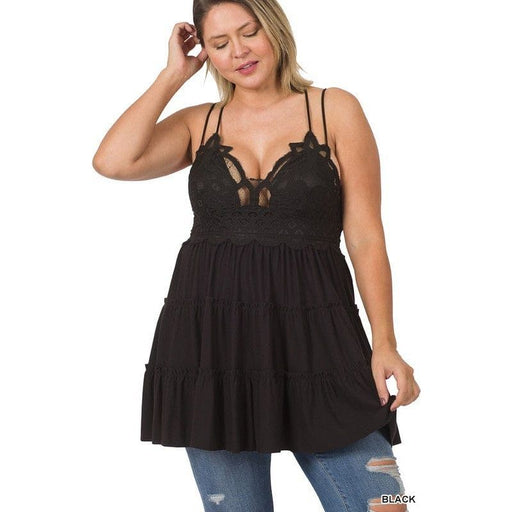View full detailsPlus Crochet Lace Ruffle Cami Dress
