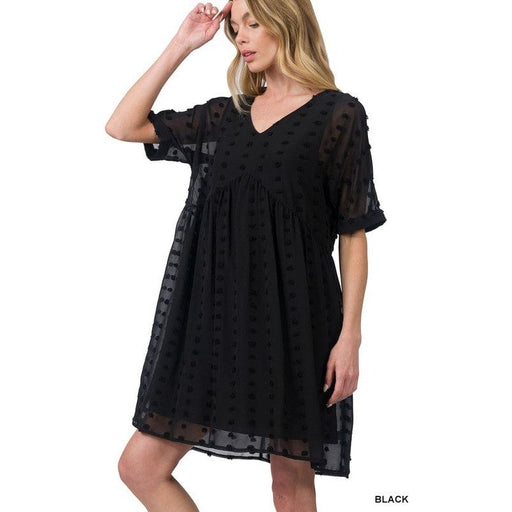 Swiss dot babydoll v-neck dress- linedTotal body length: 35.5", bust: 40" approx.- measured from small* color may vary slightly due to monitor reso...