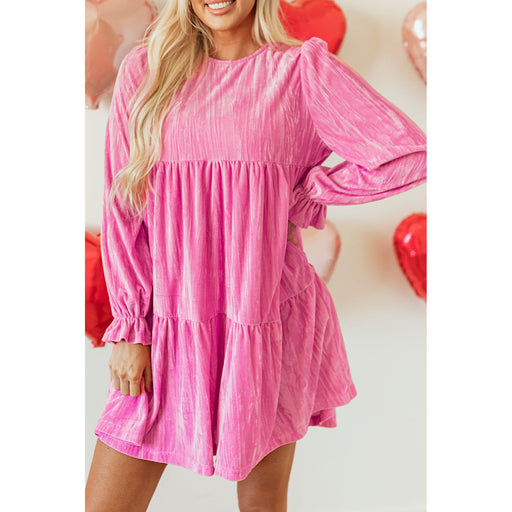 View full detailsStrawberry Pink Long Sleeve Ruffled Velvet Mini Dress