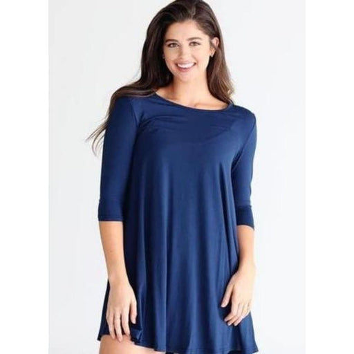 BAMBOO 3/4 SLEEVE TRAPEZE DRESS NAVY