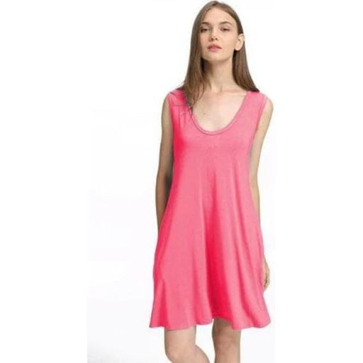 Bamboo spandex knitted tank swing dress with side seam pockets.