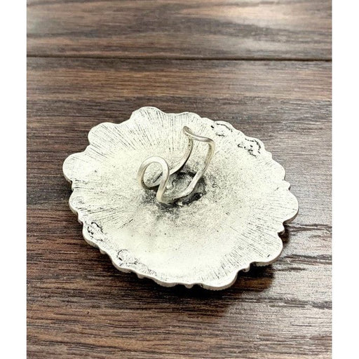High polish western concho style textured flower casting with gemstone epoxy stretch ring