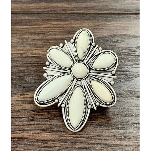 Get ready to add a touch of western flair to your outfit with our High Polish Western Gemstone Concho Flower Stretch Ring! Featuring a beautiful ca...