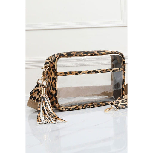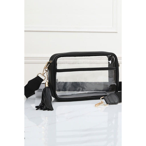 Our Solid Color Outlined Clear Crossbody Bag is a lightweight and stylish accessory for everyday use. It features a detachable strap and tassel, an...