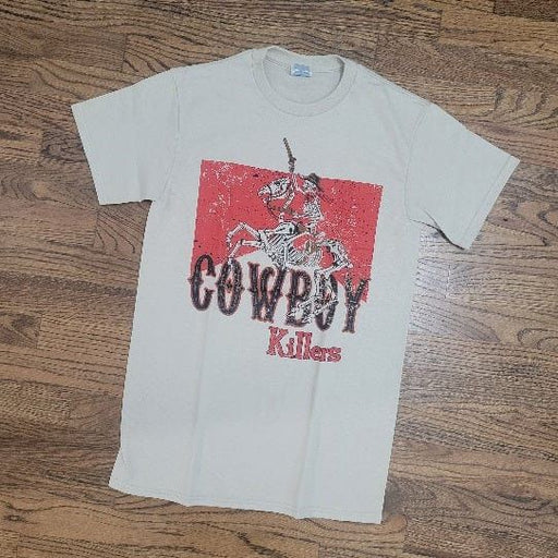 Show your style with this Western Skeleton Victory Sign Tee. Featuring a graphic of a western-style skeleton with a victory sign, this tee is perfe...