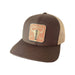 Rodeo Ranch Est Hat in brown and Khaki Snapback Trucker Cap  * 65/35 polyester/cotton * 100% polyester mesh back * Structured, mid-profile, six-panel * Pre-curved contrast stitched visor * Snapback closure * Min. 4 hats per style