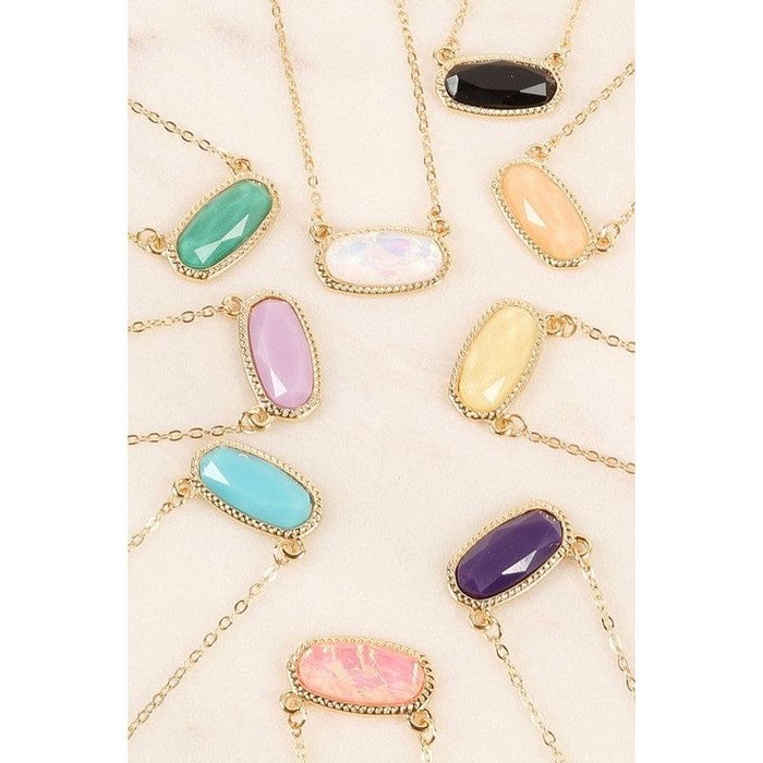 Short necklace with gemstones. Approx: 16" Material: Zinc, Gemstone Gold plated Lead Compliant, Nickle Free