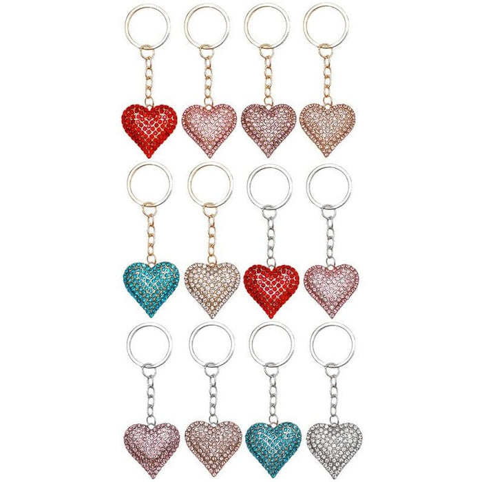 Heart Bling Rhinestone Embellished Metal Alloy Key Chain -Assorted Color (6-Silver, 6-Gold, 2 Units Per Color) -Charm Dimensions: 1.35" * 1.35" * 0.25" (Chain Length: 2.5")