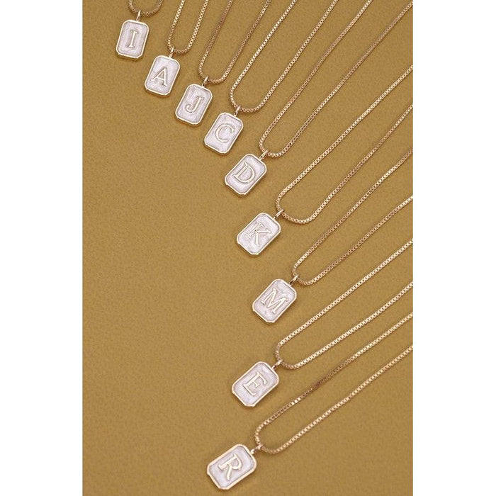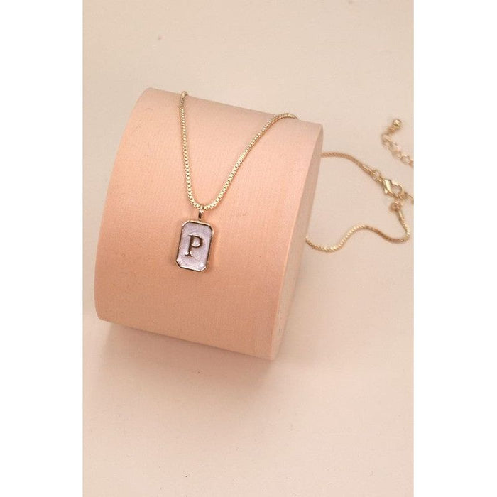 Monogram Initial Rectangle Pearly Charm Necklace