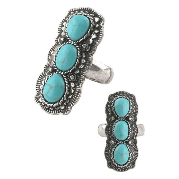 Western concho style high polish textured casting with oval shape turquoise gemstone stretch ring