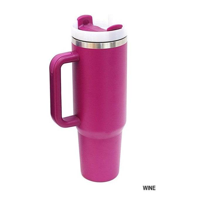 Sip on your favorite drink all day with our 40oz Stainless Steel Tumbler. The double-wall vacuum insulation and powder coat finish keep your drink at the perfect temperature. The BPA-free tumbler comes with an ergonomic handle and 3-position lid for easy use. Plus, it's dishwasher safe for convenience. Cheers to that!