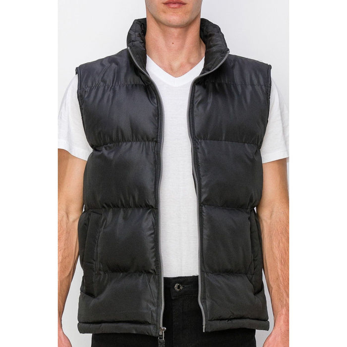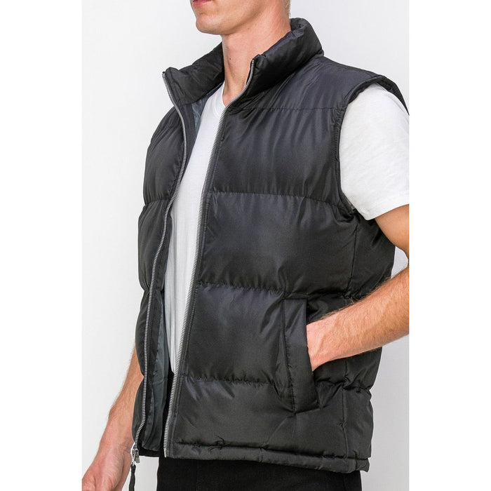 Expertly designed for warmth and style, our Men Puffer Vest features front pockets with soft polar fleece lining and a luxurious fur lining interior. The front metal zip closure ensures a snug fit, making it the perfect layer for chilly days. Stay comfortable and fashionable with this must-have addition to your wardrobe.