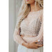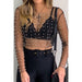 Sheer Round Neck Long Sleeve Rhinestone Faux Pearl Mesh Top