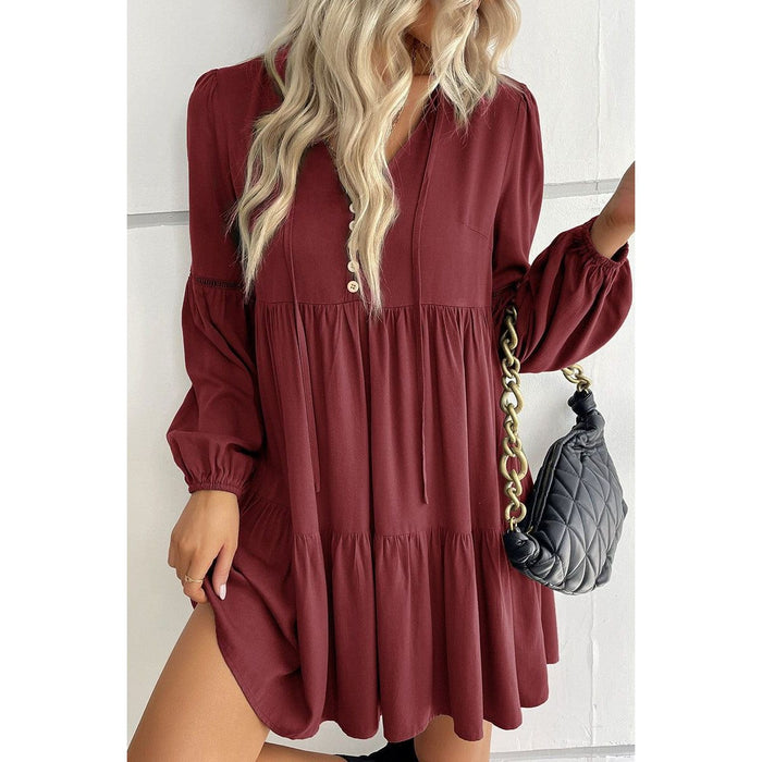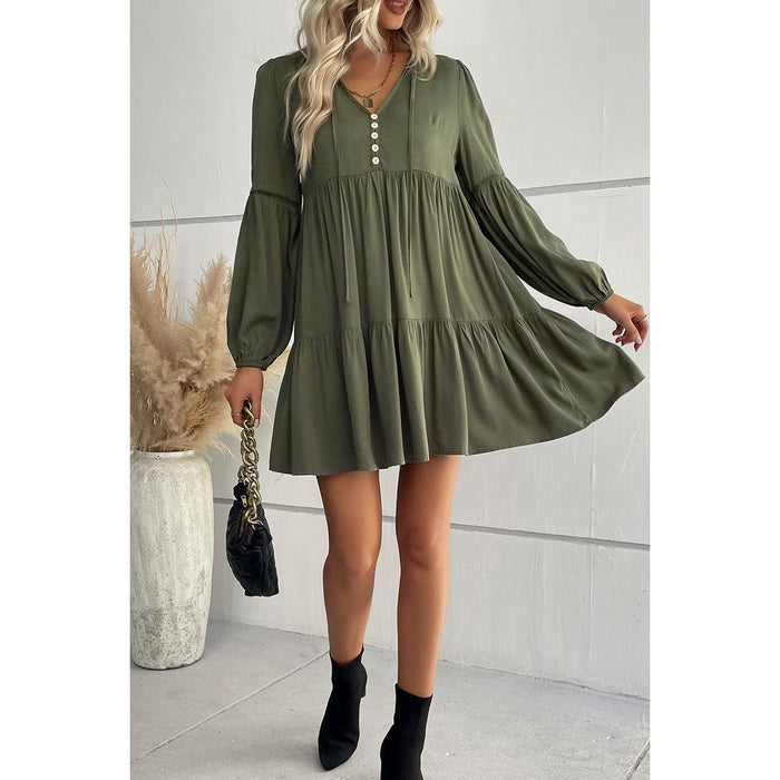 This tiered mini dress offers a fresh take on the classic summer dress. Made with lightweight, breathable fabric, its tiered design adds dimension and movement to your silhouette. Perfect for any occasion, this dress is a versatile and stylish addition to your wardrobe.