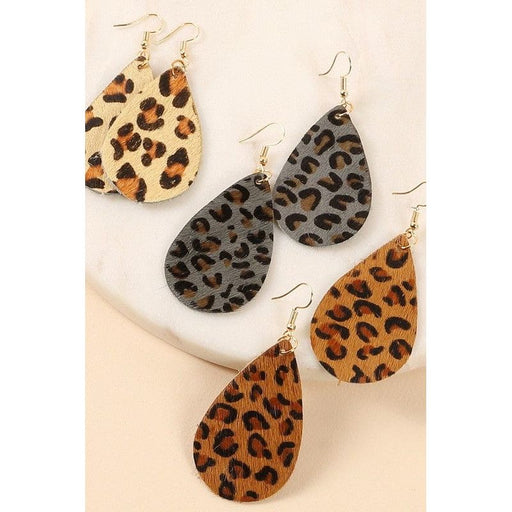 Pendientes lágrima de auténtica piel de becerro con estampado animal. Use estos divertidos aretes con estampado animal con un botón blanco impecab...