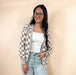 Elevate your layering game with this Brown Checkered Open Front Drop Shoulder Cardigan. The iconic checkered pattern delivers timeless style that pairs effortlessly with any wardrobe staple, while the open front design offers versatile layering options. Crafted from soft knit fabric, this cardigan wraps you in warmth and comfort when temperatures drop. The relaxed drop shoulder cut creates an effortlessly chic silhouette that flatters every frame. Perfect for transitional seasons or cozy indoor moments, this piece becomes an instant go-to for both casual and polished looks.