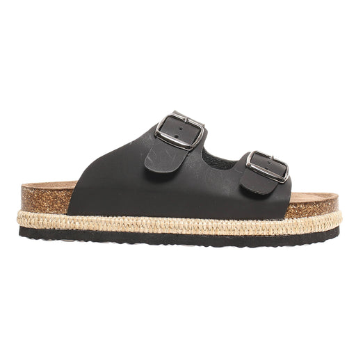 Sandalias de doble tira con pedrería en las tiras y en los bordes con puntera cuadrada.