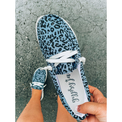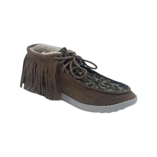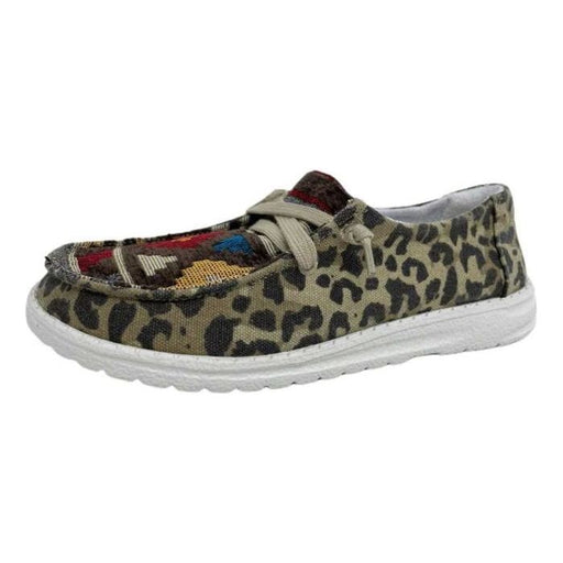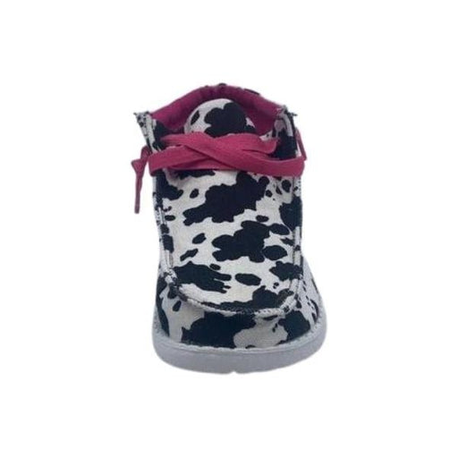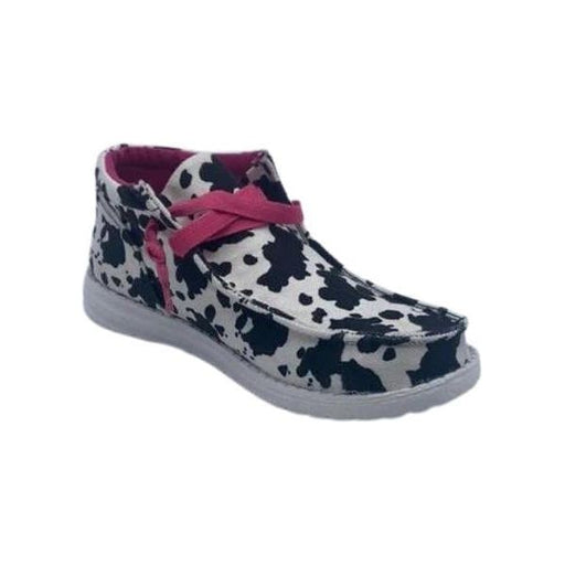 Zapatos sin cordones con estampado de vaca y cordones.