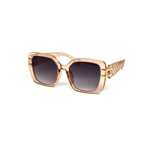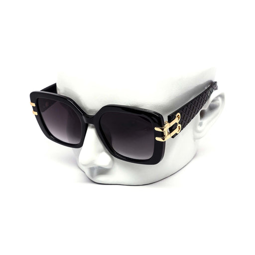 Excéntrico diseño cuadrado extragrande de alta costura con hermosas lentes degradadas y patillas con patrón tipo gofre y detalles dorados en los la...