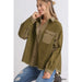 Chaqueta con botones y cuello de pana, bolsillo en el pecho y dobladillo alto y bajo sin rematar