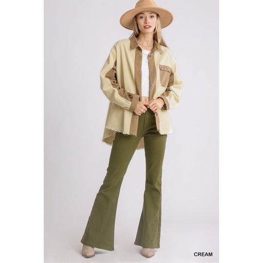 Chaqueta con botones y cuello de pana, bolsillo en el pecho y dobladillo alto y bajo sin rematar La modelo mide 5'8" y lleva una talla pequeña. ...
