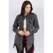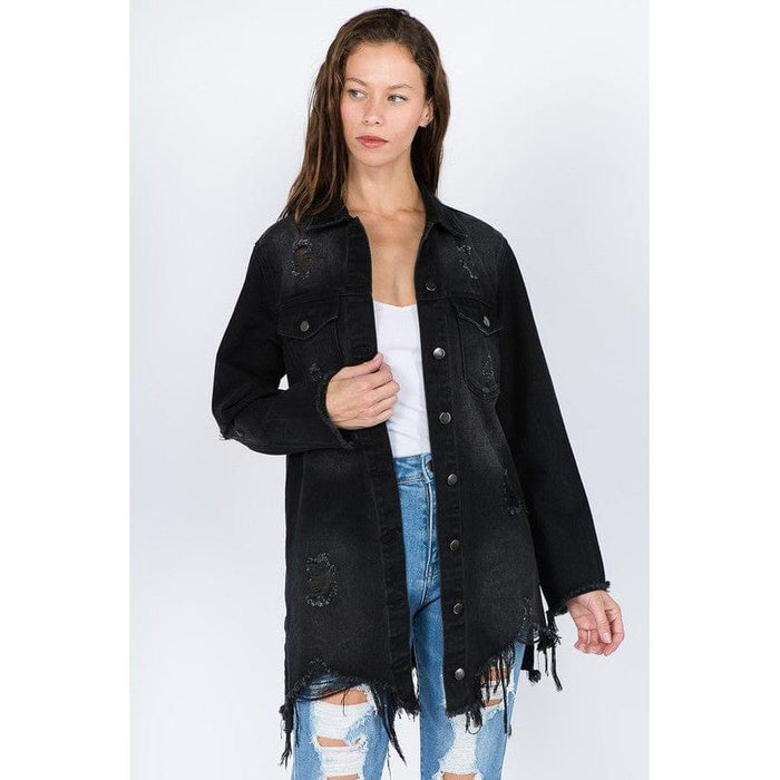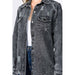 Chaqueta estilo camisa de mezclilla desgastada - camisas de mezclilla con cierre de botones en la parte delantera - mezclilla lavada ligera con ribetes desgastados en la parte delantera y trasera - dobladillo de corte natural con acabado de puño deshilachado