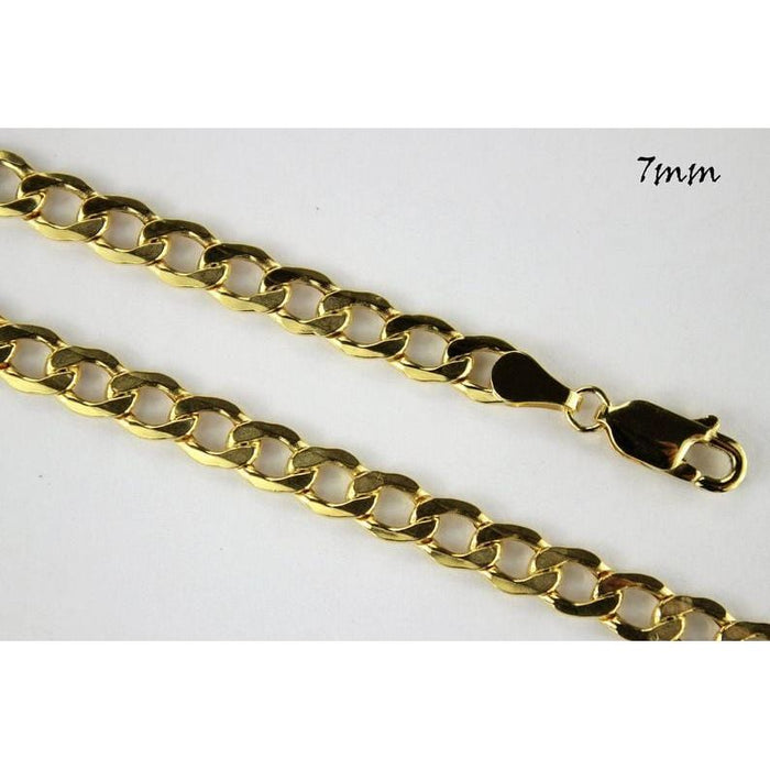 10K Yellow Gold Hollow Cuban Curb Chain Link Pendant Necklace