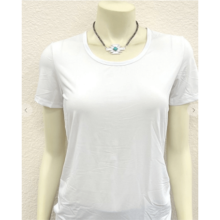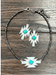 16" long, tiny 4mm navajo pearl necklace, aztec natural turquoise pendent and earrings. Antique silver Plate. Nickel, lead, and chrome free.