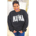 Graphic sweatshirt design features a distressed MAMA with a black and white checkerboard lightning bolt in the middle. This trendy top is perfect for Mother's Day!