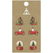 This unique wooden stud earring set features 3 pairs of Christmas-themed tree globes, pine cones, and Santa cars. Ideal for gift giving or keeping for yourself, each set will add a delightful holiday touch to your ensemble.
