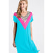 Short sleeve round neck solid and leopard animal chevron print contrast dress with side pocket