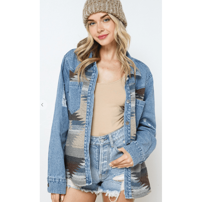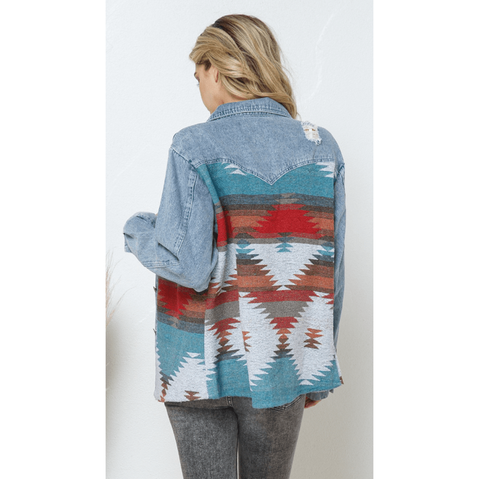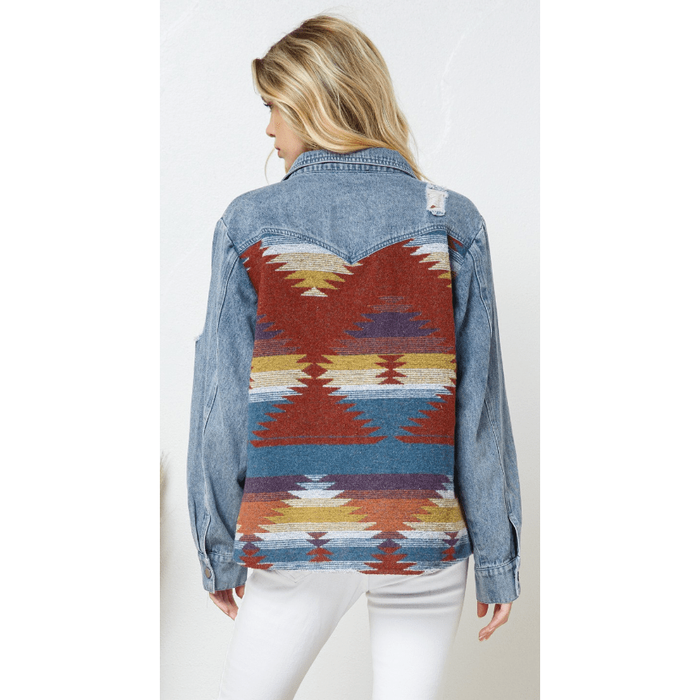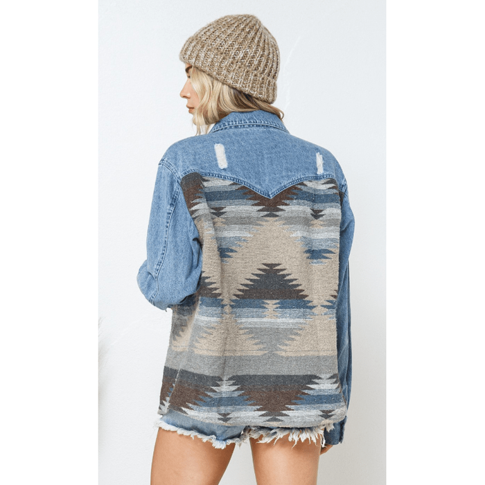 Denim Contrast Aztec Jacket