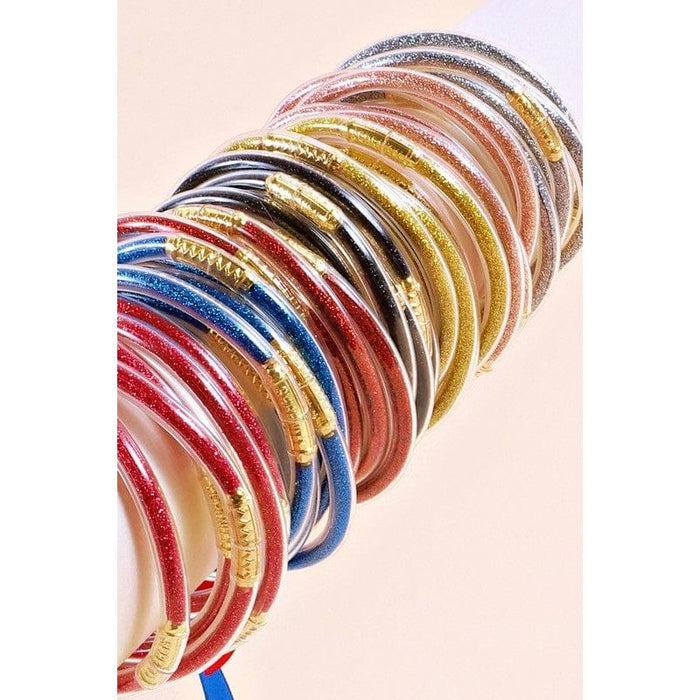 Glitter Jelly Tube Stack Satin Bow Bracelet