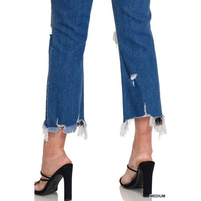 Our Mid-rise Distressed Denim Pants Feature A Classic Bootcut Design, Cropped Length And Distressed Hem Detail. Crafted From Quality Denim, They Provide A Secure Fit With A Flattering Rise Of 10.25" And Leg Opening Of 15", With A Length Of 26" To Finish The Look. Model Is 5'9" Wearing Size 27.