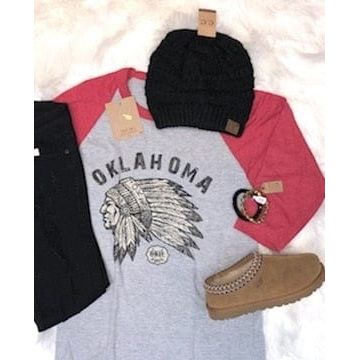 Oklahoma Indian Chief Head Graphic Quarter Sleeve