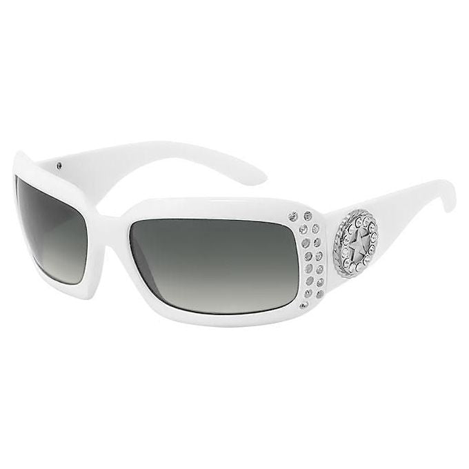 These fashionable Rhinestone Shades glasses feature a plastic frame with metal stars and rhinestones on the temples, offering a unique and stylish look. Available in three colors - black, brown demi, and white - and with smoke/brown gradient PC lenses, these glasses let you keep up with the latest trends while looking stylish and glamorous.