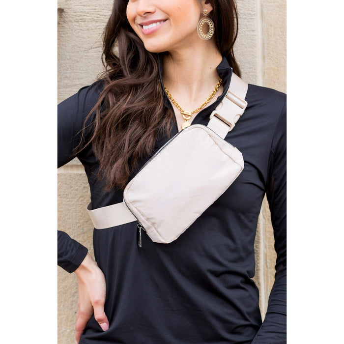 The Roam Nylon Belt Sling Bag is the perfect hands-free bag for any occasion. Crafted from durable nylon, this bag features adjustable straps up to 35.5" and an exterior back zip pocket for added convenience. Easily accessible with a sturdy clasp closure, the bag's three interior open mesh pockets and boutique quality make it ideal for securely storing your essentials.