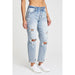 Rocky Supernova boyfriend jeans boast an 11 inch high rise with a light wash denim finish and subtle knee blowout detailing. Five pocket design, belt loops and hidden zip fly with button closure provide a stylish fit, along with light fading and whiskering. 27 inch ankle inseam offers a fashionable look and comfortable fit.