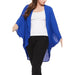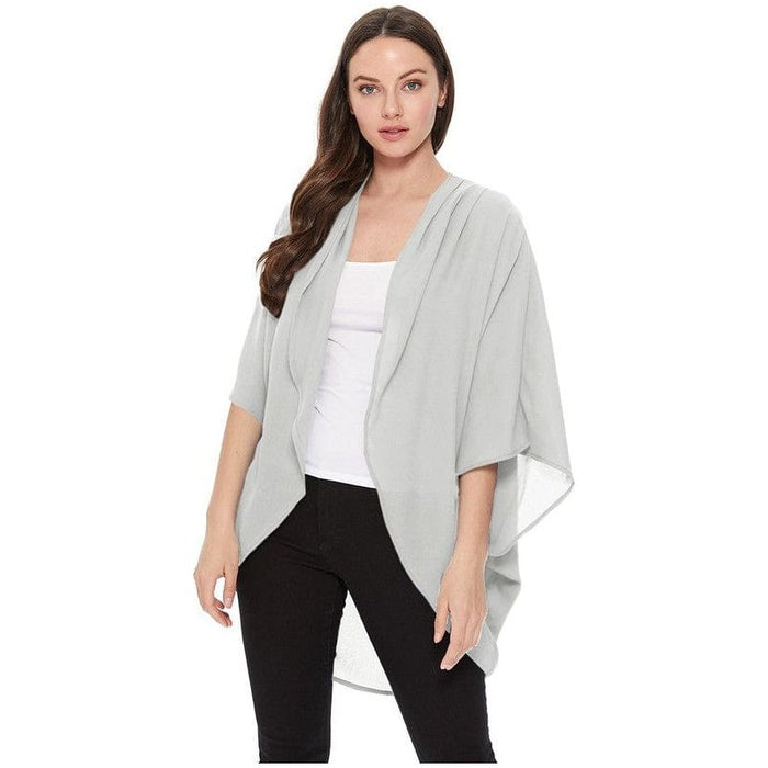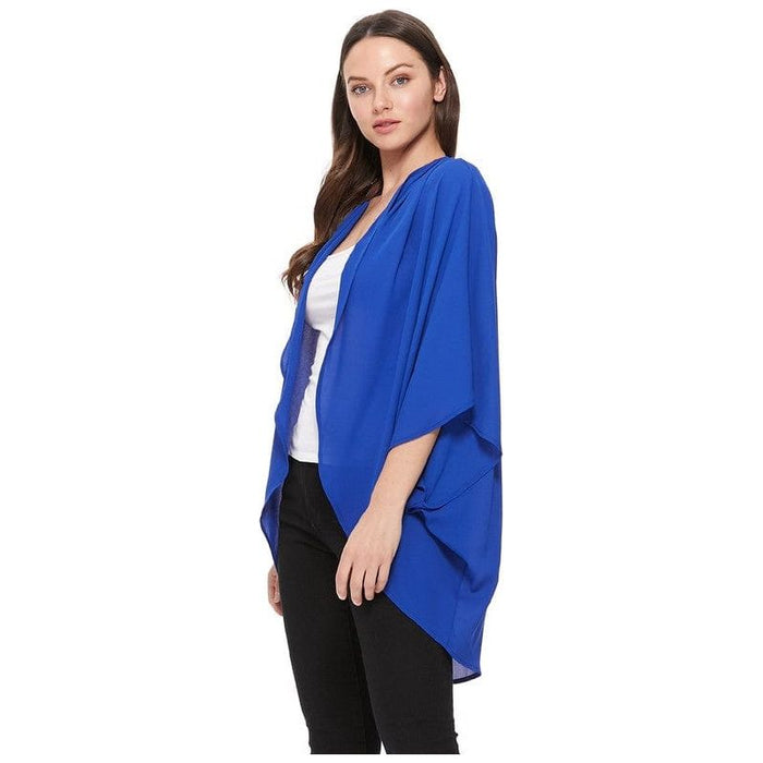 Solid, long body cardigan in a loose fit with an open front, 3/4 length kimono sleeves, and hi-low hem.*Approx: Length: 33in, Sleeve: 7in, Shoulder: 18in