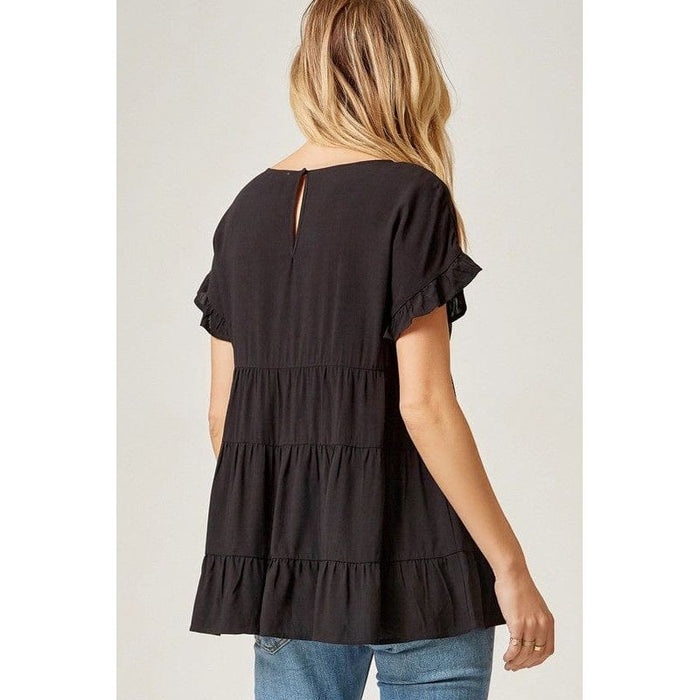 Our favorite babydoll top is finally here! Round neckline, flowy bodice. Lightweight, woven.